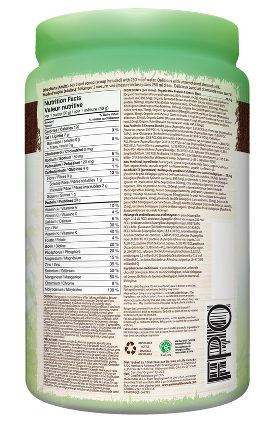 Garden of Life Raw Organic Protein & Greens Powder - Chocolate 610g
