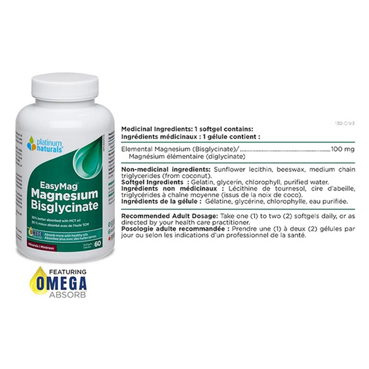 Platinum Naturals EasyMag Magnesium Bisglycinate 60 Capsules