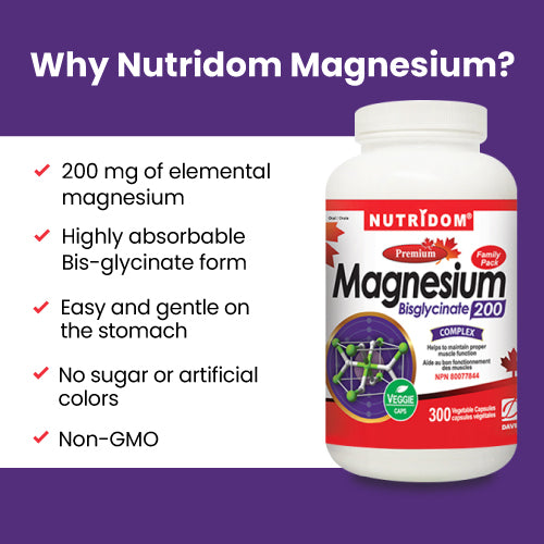 To support better absorption, take Magnesium with a meal and stay well-hydrated. Magnesium plays a key role in muscle function, stress management, and overall wellness. Trust in Canadian-made quality to support your daily health needs.