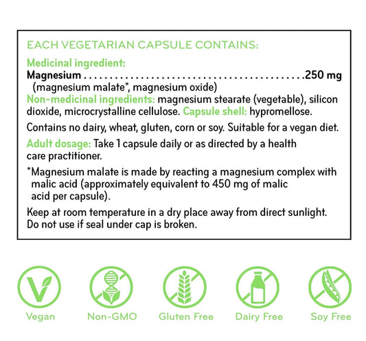 Sisu Magnesium Malate 250 mg, 200 Veggie Capsules