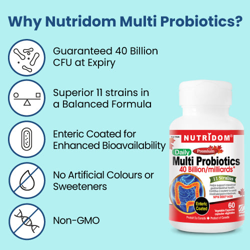 Nutridom Multi Probiotics, 40 Billion, 11 Strains, Enteric Coated, 60 Veggie Capsules