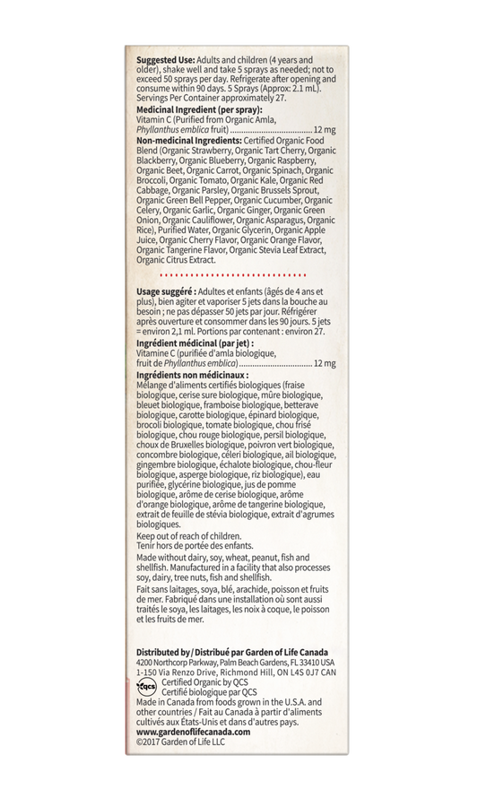 Garden of Life Mykind Organics Vitamin C Organic Spray - Cherry-Tangerine 58ml
