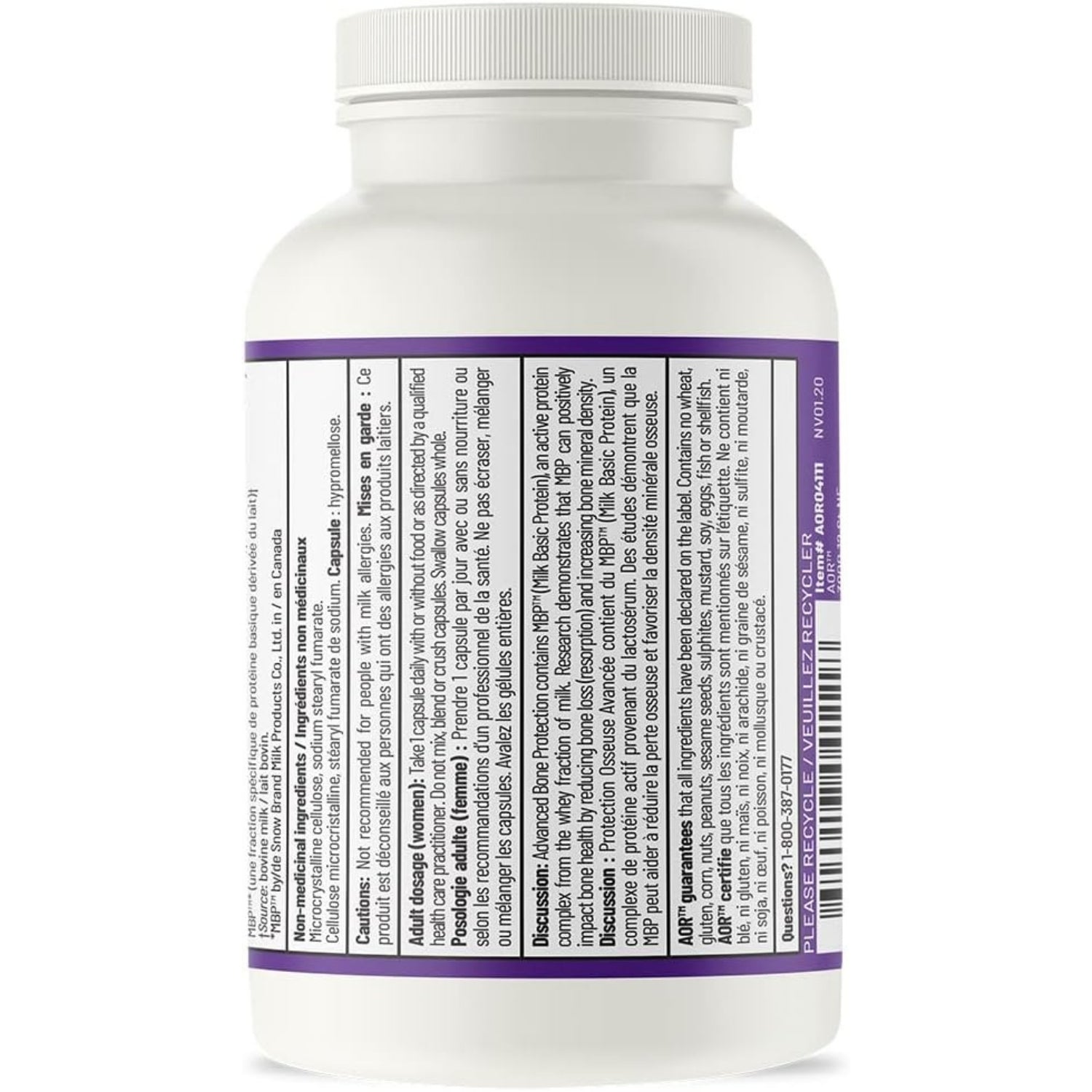 Advanced Bone Protection is Milk Basic Protein (MBP™), a specific whey protein fraction found in trace amounts in bovine milk. MBP is considered to be so safe and vital that some food items are fortified with it in Japan, where it was discovered.