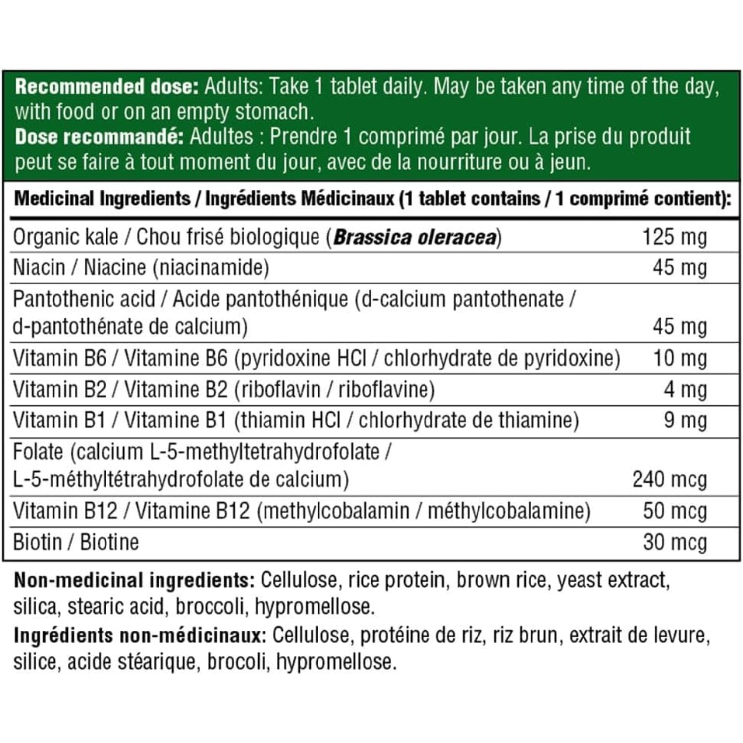 1 tablet daily. May be taken anytime throughout the day, even on an empty stomach.