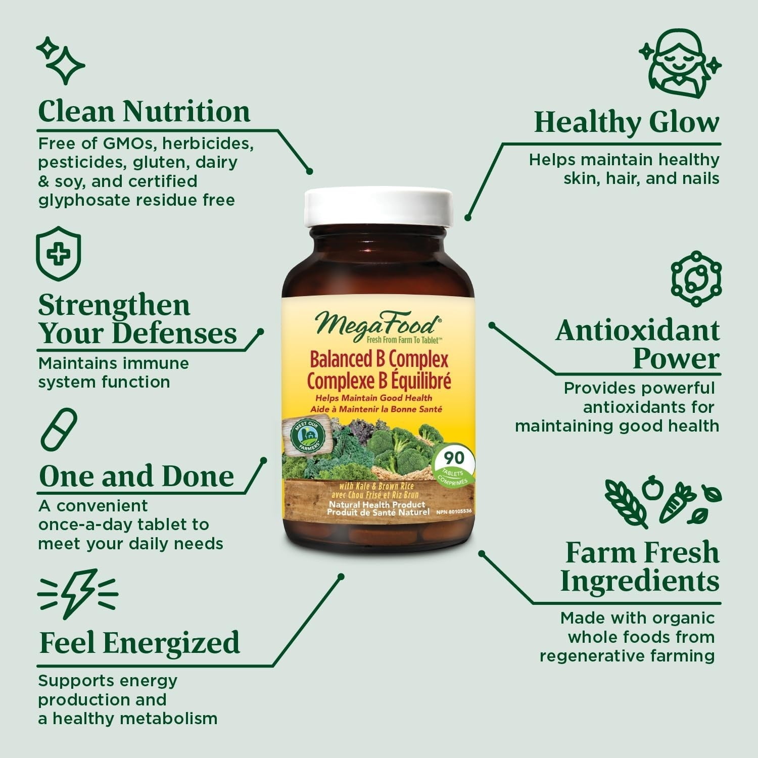 Want more pep in your step? MegaFood® Balanced B Complex supports your nervous system and assists in the conversion of food into energy with its balanced ratio of FoodState® B complex vitamins and nourishing real food like organic kale and brown rice.* It can be taken anytime throughout the day, even on an empty stomach.
